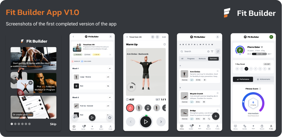 The project is currently in closed beta. For more information, please visit fitbuilder.app. The roadmap for the next couple of versions has already been defined. Here are some of the things to come: